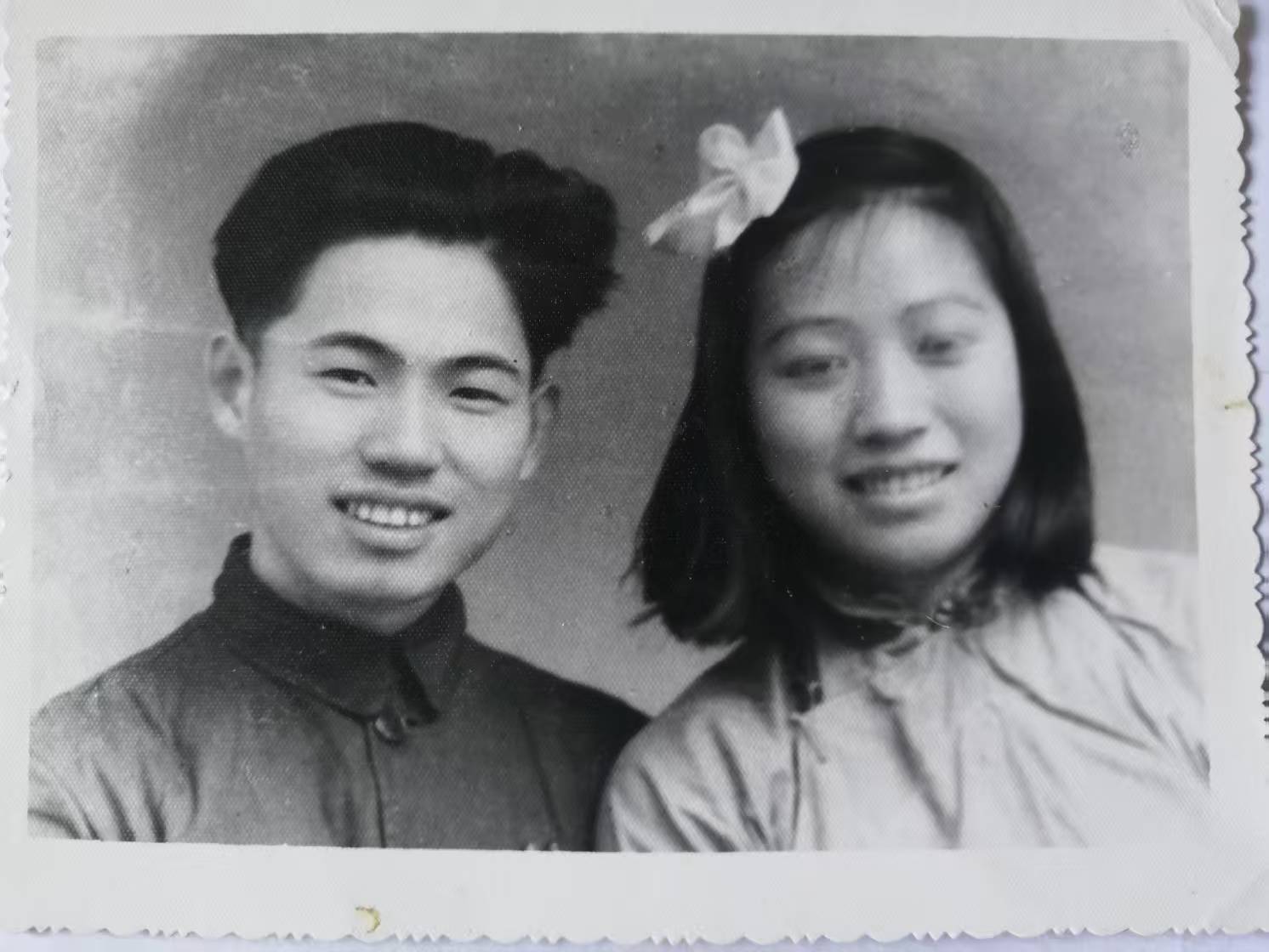 1、父母亲结婚照。父母亲于1956年11月15日登记结婚。合理推测此照的拍摄时间应在1956年10月至11月上旬间。时年父亲22岁,母亲18岁。当年的父亲英俊开朗,母亲美丽纯真,可谓清水出芙蓉,天然去雕饰。这是父母亲留存最早的照片,至今已69年,弥足珍贵。