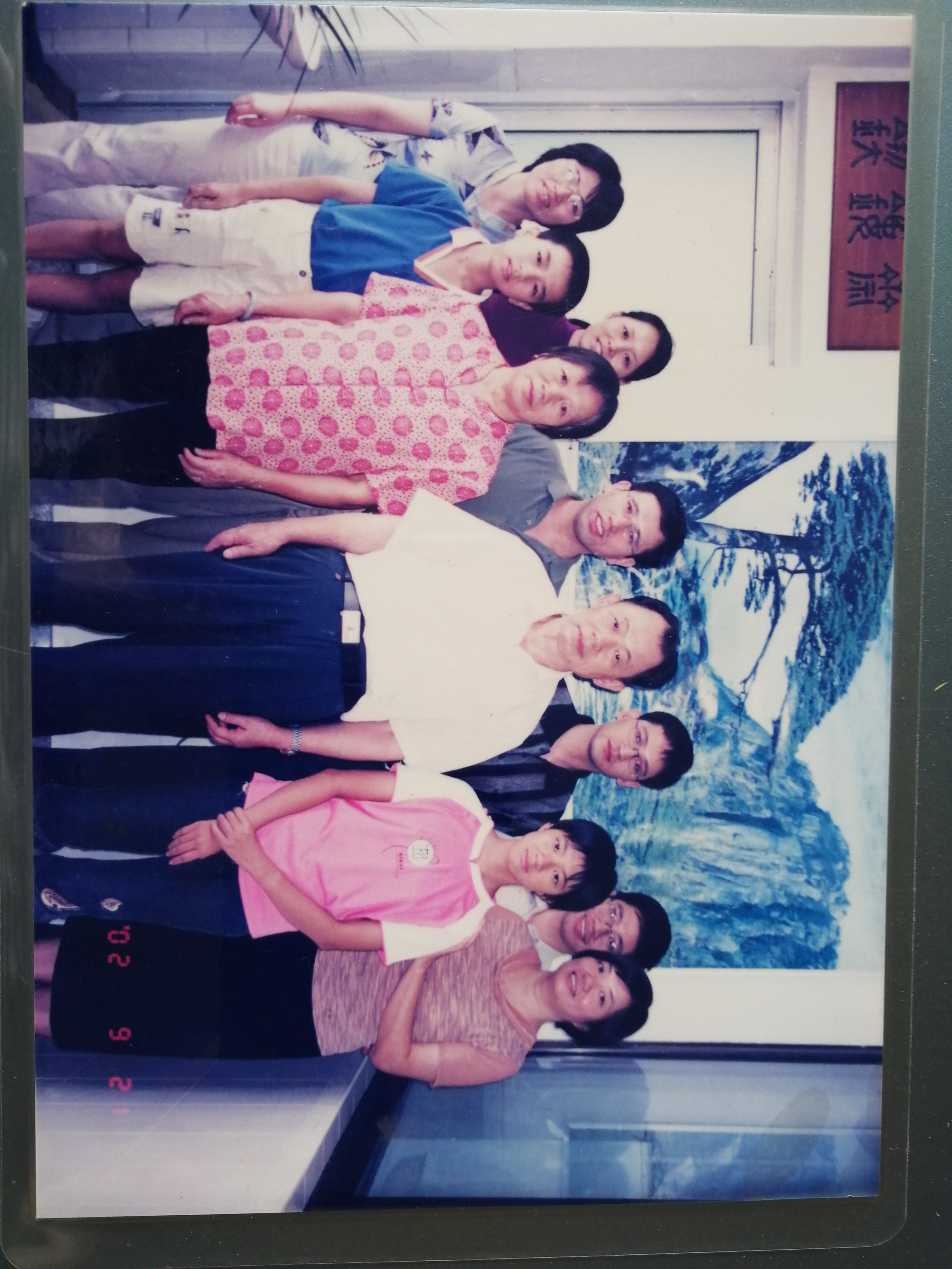 6、全家福。摄于2002年9月21日,为大弟出国十年后第一次回家时合影,地点即现在的南雄沿江东路居所。彼时我们休假回到家中团聚。时年父亲68岁,母亲64岁。
