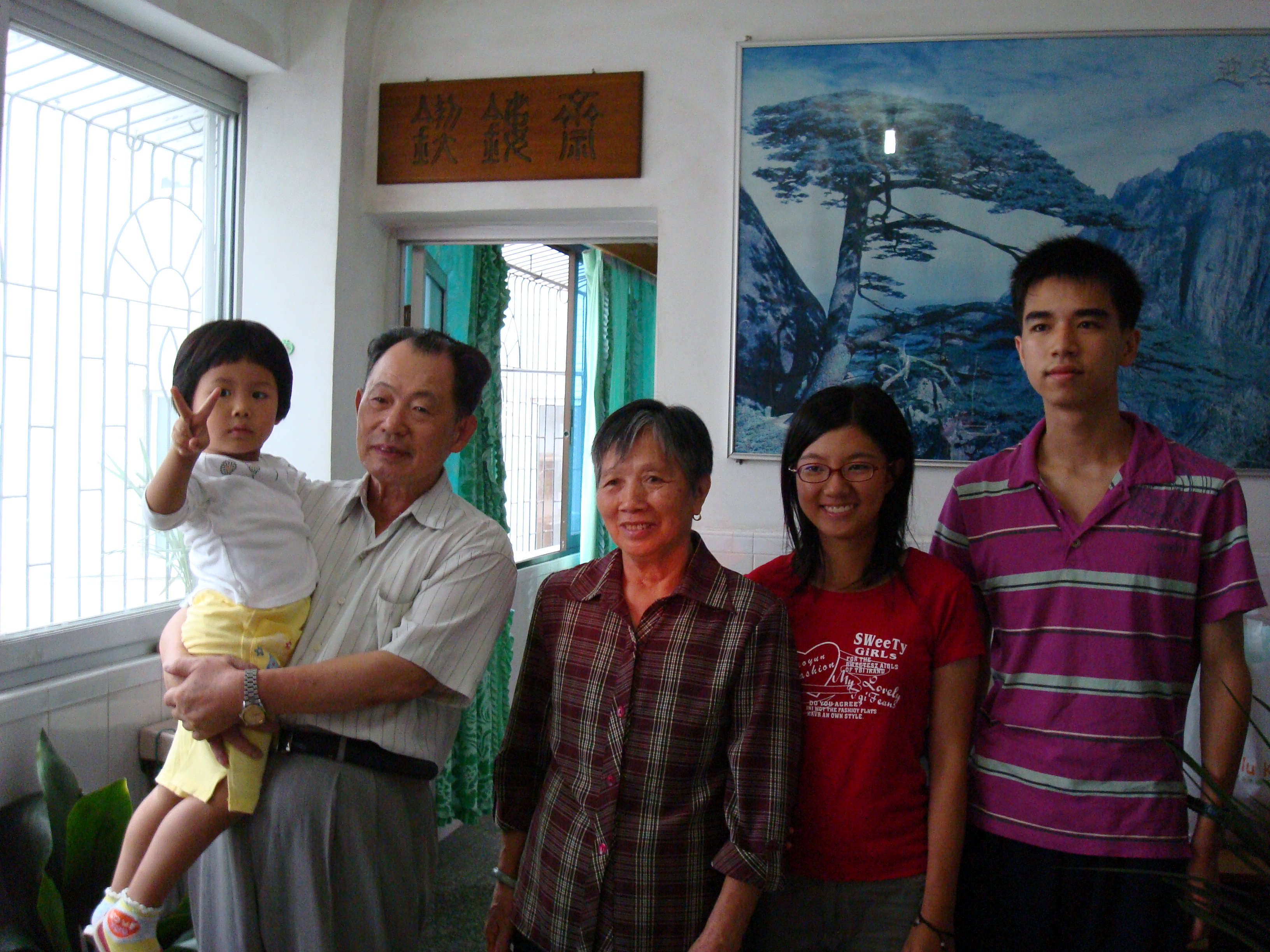 10、父母亲与三个孙辈。拍摄于2008年10月3日。此前父母亲从美返回,国庆节期间我们回家团聚,此后11月初父母亲再次返美。彼时悦悦3岁,儿时喜欢做胜利的姿势。