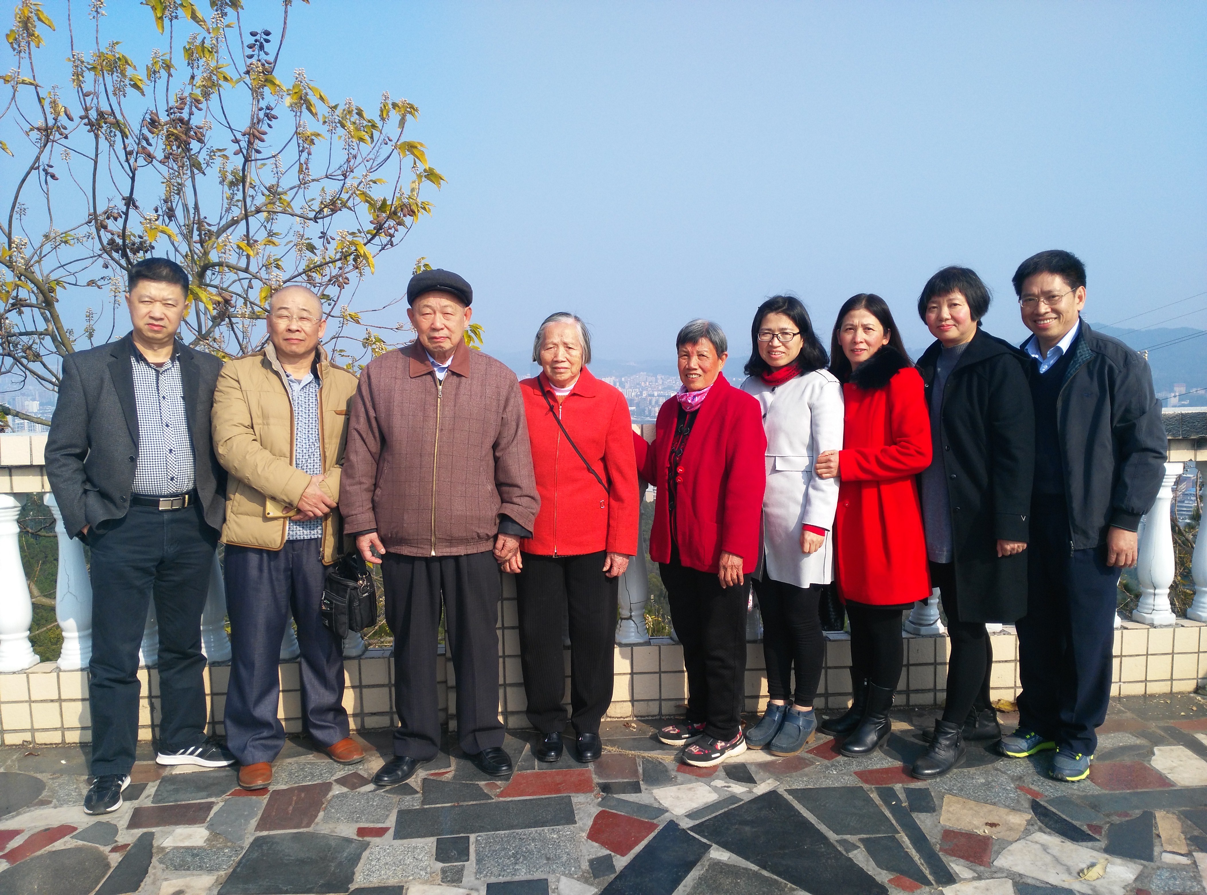 14、父母亲与亲戚合影。拍摄于2017年12月31日。岁末这天,我们在韶关召集部分亲戚聚会,父母亲当天从南雄来到韶关,在芙蓉山下的餐馆用午餐后,驱车沿环山公路一周。在山顶的一个亭子里合影并于当日赶回南雄。父亲时年83岁,母亲79岁。
