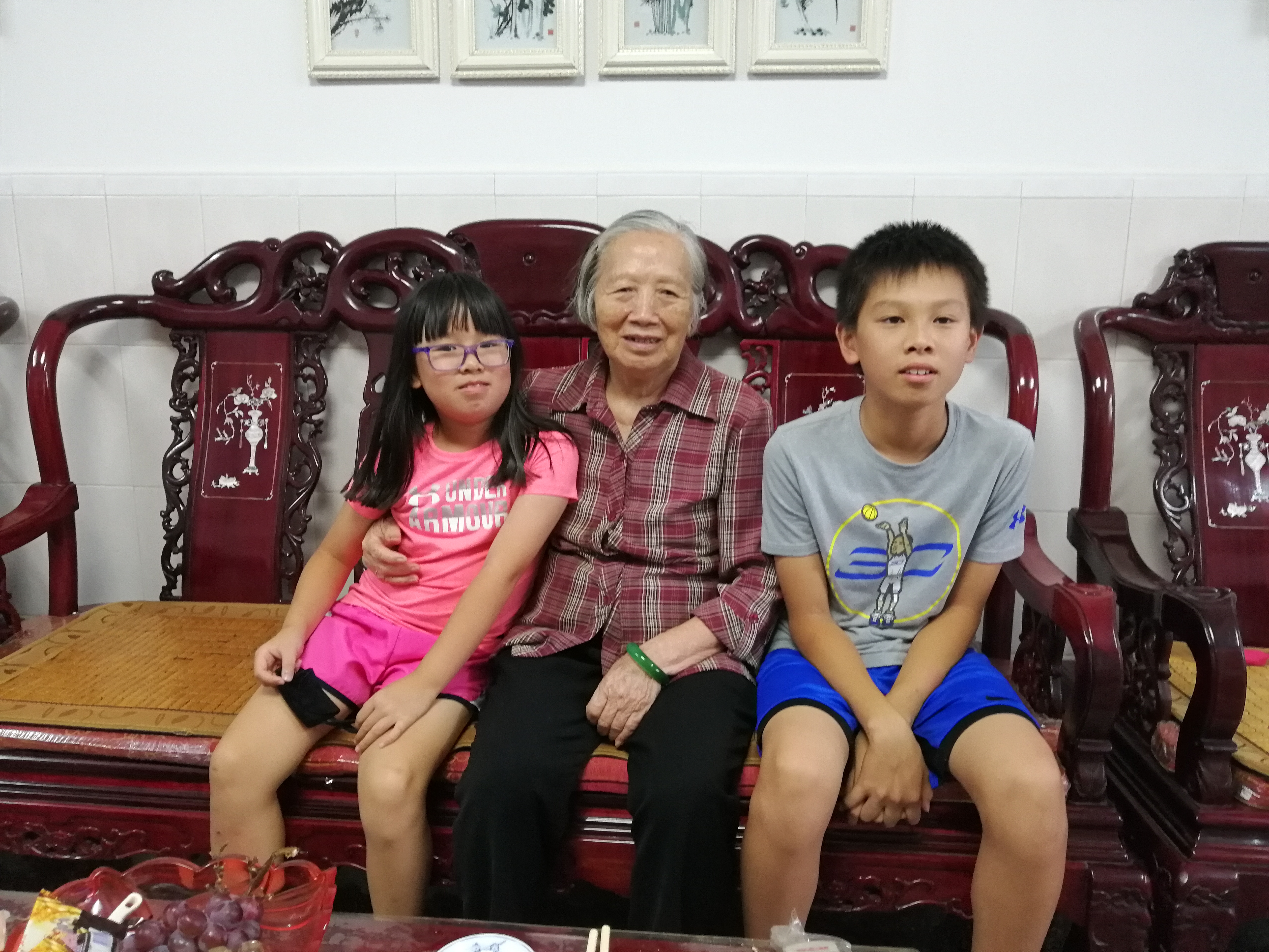 15、奶奶与孙儿。2018年7月25日摄于南雄家中。哥哥和妹妹依偎在奶奶身边,此刻的母亲感受到了无比的幸福。